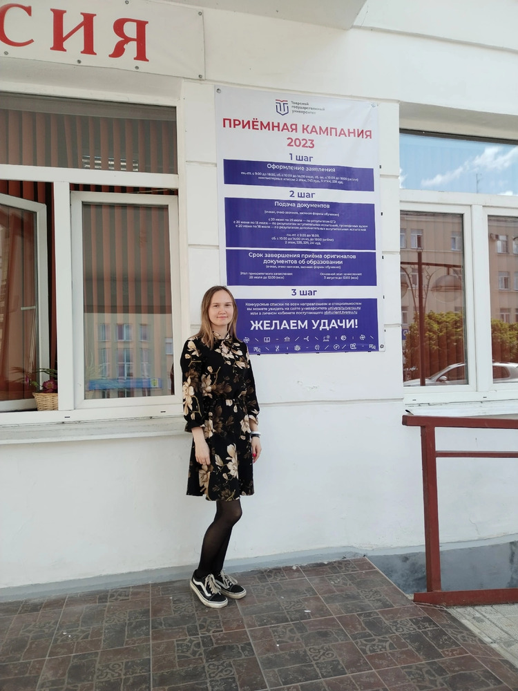 Летом 2023 г. в Приемной комиссии ТвГУ работает студентка 2 курса направления «Юриспруденция» Елизавета Якимова.