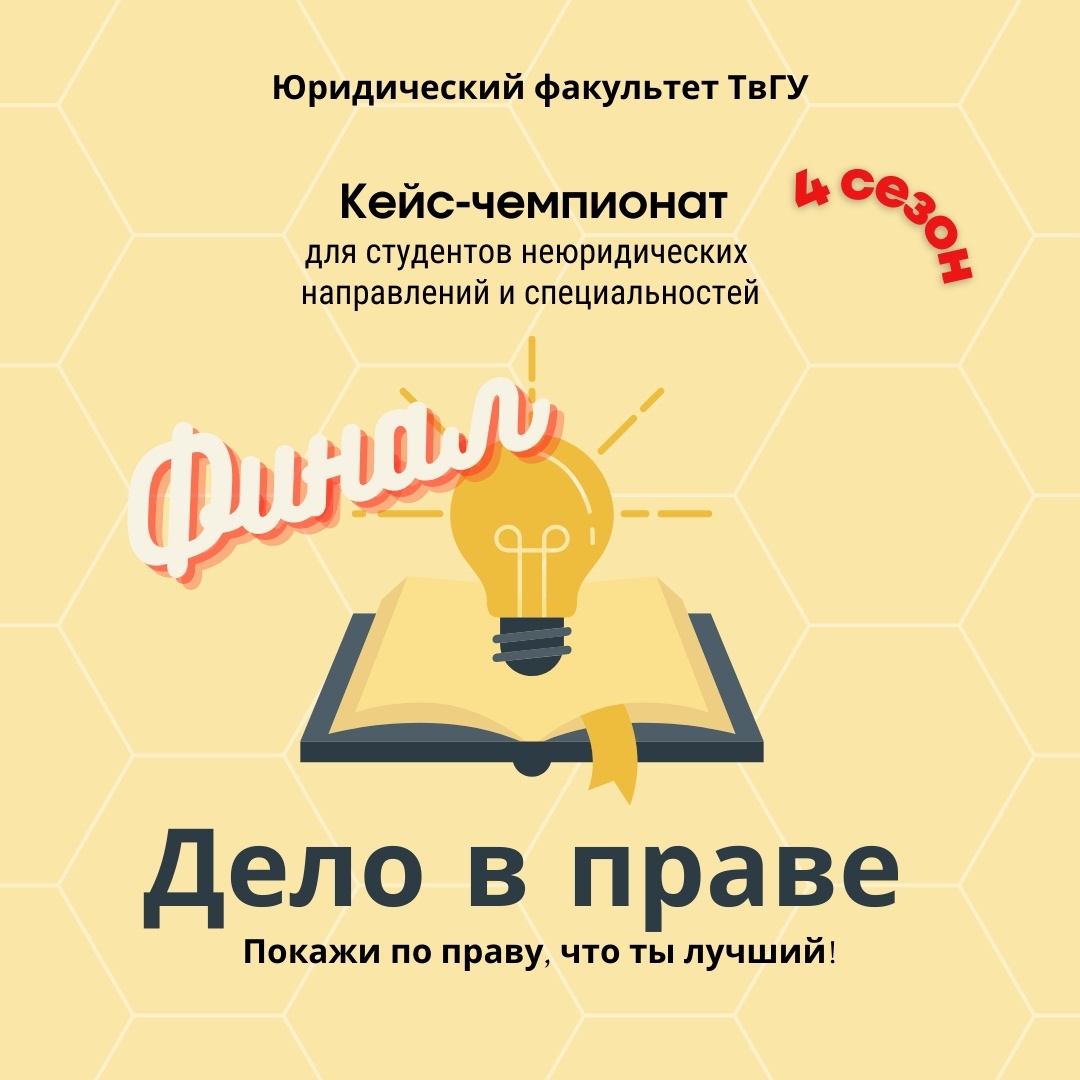 Подошел к концу заочный этап у команд-участников четвертого сезона Кейс-чемпионата для студентов неюридических направлений и специальностей "Дело в праве", который ежегодно проводится юридическим факультетом ТвГУ.
