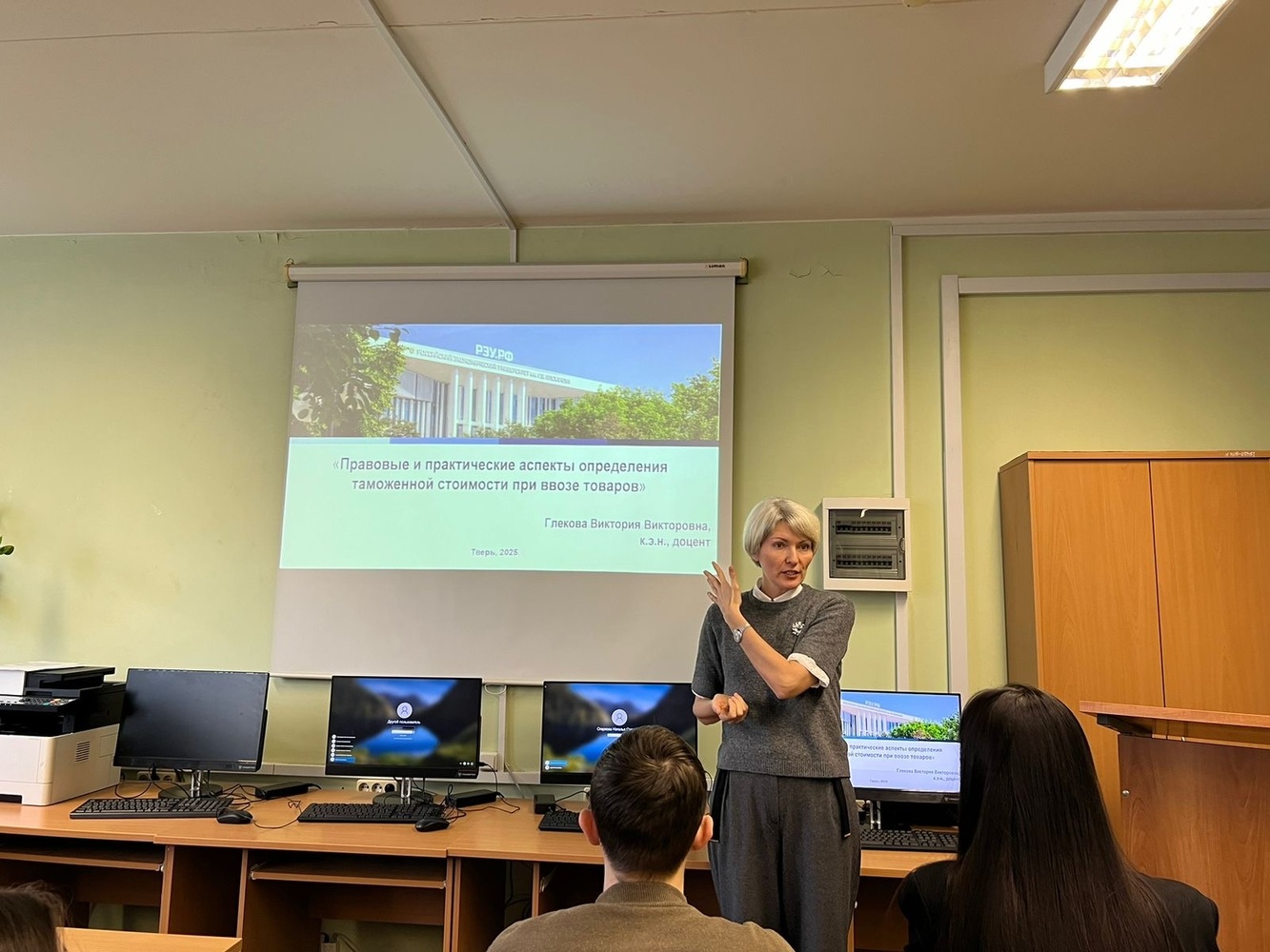 Виктория Викторовна также подчеркнула, что навыки по определению таможенной стоимости помогут успешно пройти собеседование с целью трудоустройства как в сфере ВЭД, так и в таможенные органы. Несомненно, участие наших студентов в мероприятии такого формата, позволяет расширить горизонты привычного восприятия теоретического материала. Выражаем Виктории Викторовне благодарность за лекцию и надеемся на дальнейшее сотрудничество!