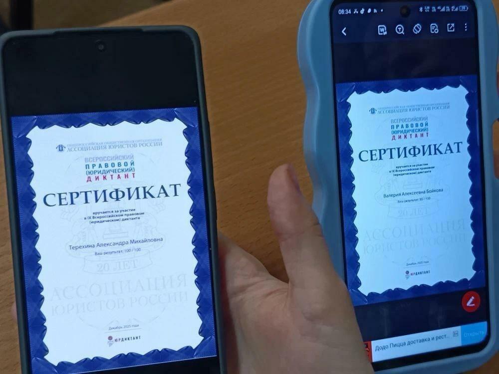 Для информации. В этом году Диктант состоял из 33 тестовых вопросов, каждый вопрос имел четыре варианта ответа, правильным из которых является только один. По завершении теста каждый участник получил электронный сертификат о прохождении диктанта с персональным результатом, а также доступ к информационным материалам по допущенным ошибкам. Сегодня на официальной платформе юрдиктант.рф размещены информационные материалы с правильными ответами.