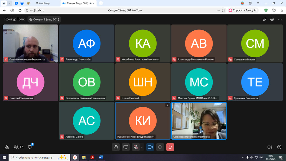 Трибуна молодого ученого в рамках Всероссийского круглого стола «Российское государство: непрерывность и преемственность развития», организованного Российским государственным университетом правосудия им. В.М. Лебедева, была проведена 12 декабря 2025 года в смешанном формате (онлайн и офлайн) кафедрой конституционного права имени Н.В. Витрука. В столь знаменательный день работу второй секции научного мероприятия открыло выступление аспиранта кафедры теории права Тверского государственного университета Феоктистова Павла Алексеевича (научный руководитель – заведующий кафедрой теории права, д.ю.н., профессор Крусс Владимир Иванович). Молодой исследователь поделился своими наработками по проблематике конституционного правопользования как институционального ресурса защиты права на жилище в Российской Федерации и ответил на вопросы модераторов. Планируется публикация сообщения П.А. Феоктистова в формате научной статьи в сборнике материалов круглого стола.