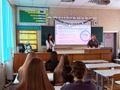 студентки 2 курса направления "Юриспруденция" Налбандяян Мане и Шпагина Маргарита посетили МОУ "Тверской лицей", где рассказали учащимся 11 класса о факультете.
